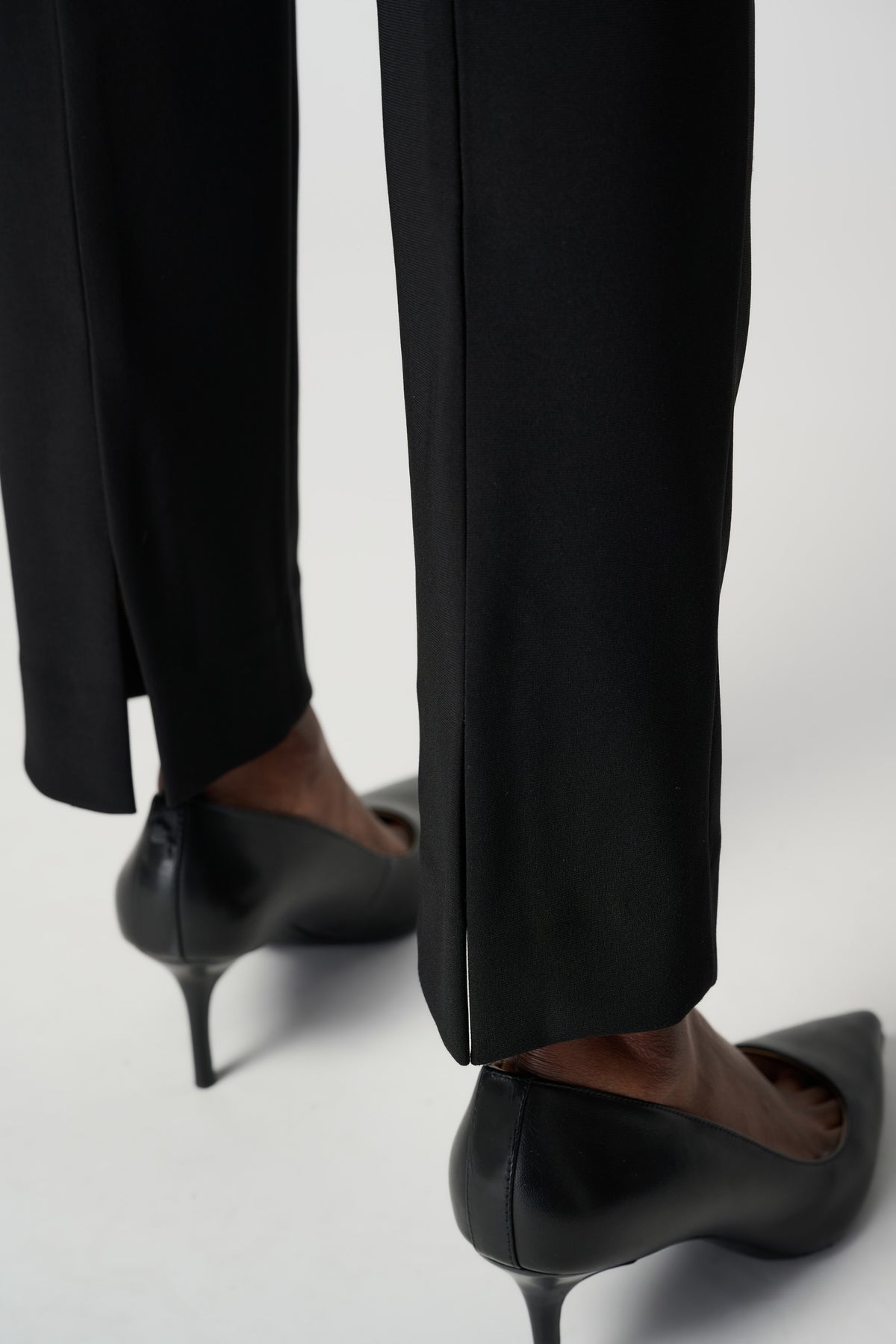 This straight-leg pull-on pant is designed to be endlessly comfortable, yet effortlessly polished. Crafted from a flattering silky knit and finished with a smooth, covered waistband, it slips on with ease. Subtle back slits at the hem add a refined touch — perfect for dressing up or down. A wardrobe staple for formal to office to casual settings.