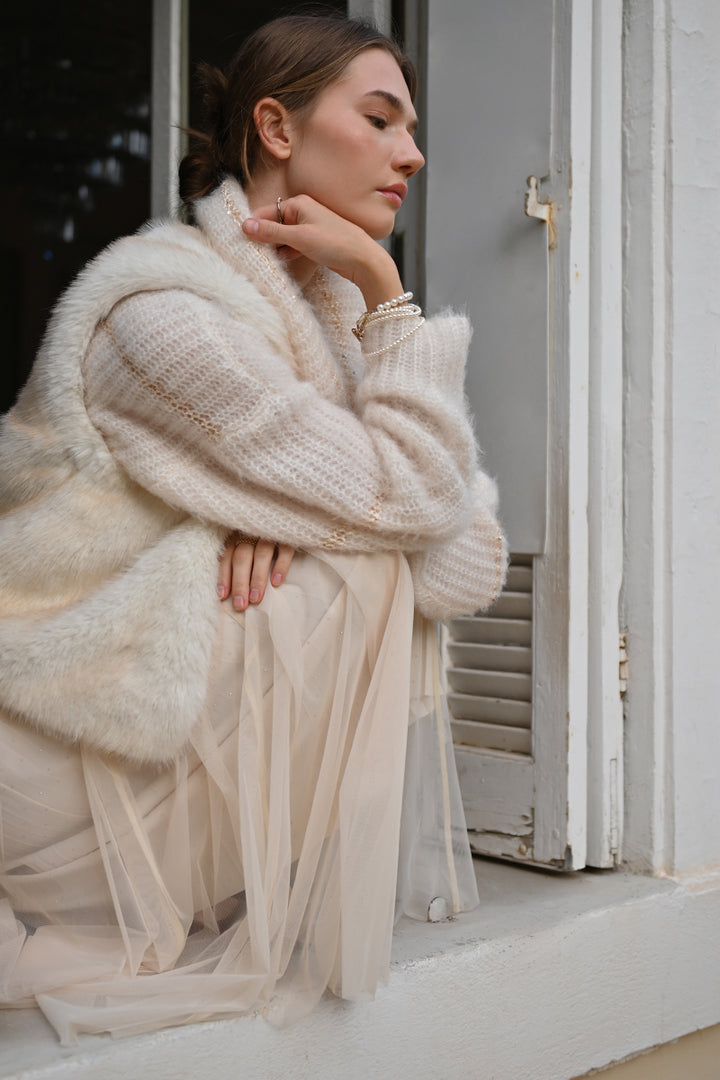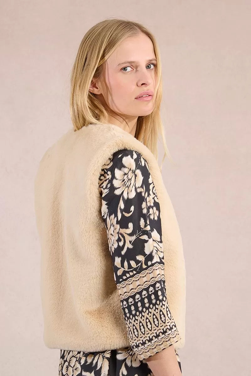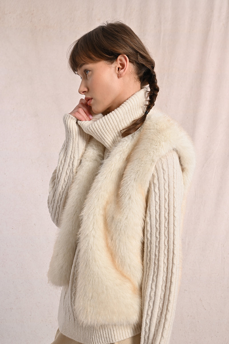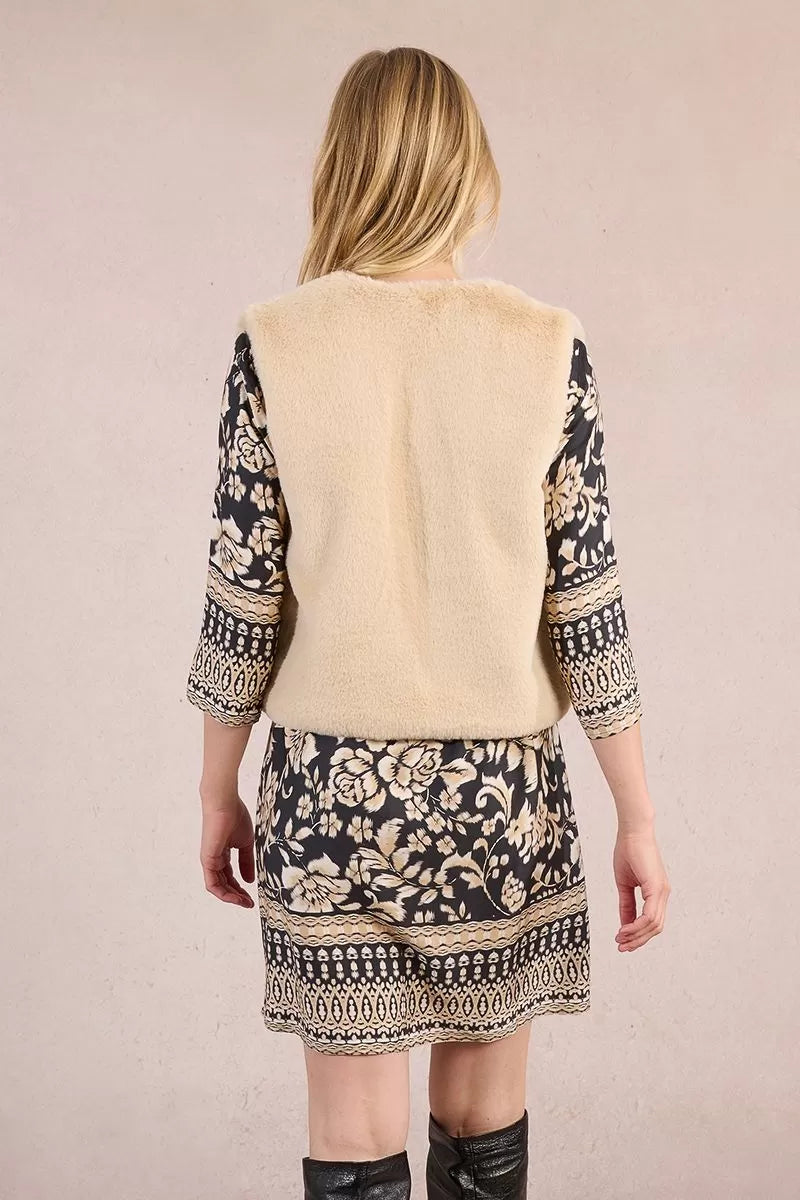 A gentle layer with bohemian charm, this faux fur textured vest offers a soft structure with a straight, cropped cut. and open neckline. Meant to be worn over airy blouses, flowing dresses, or light knits, it brings a sense of ease, earthiness, and quiet intention to your autumn layering.