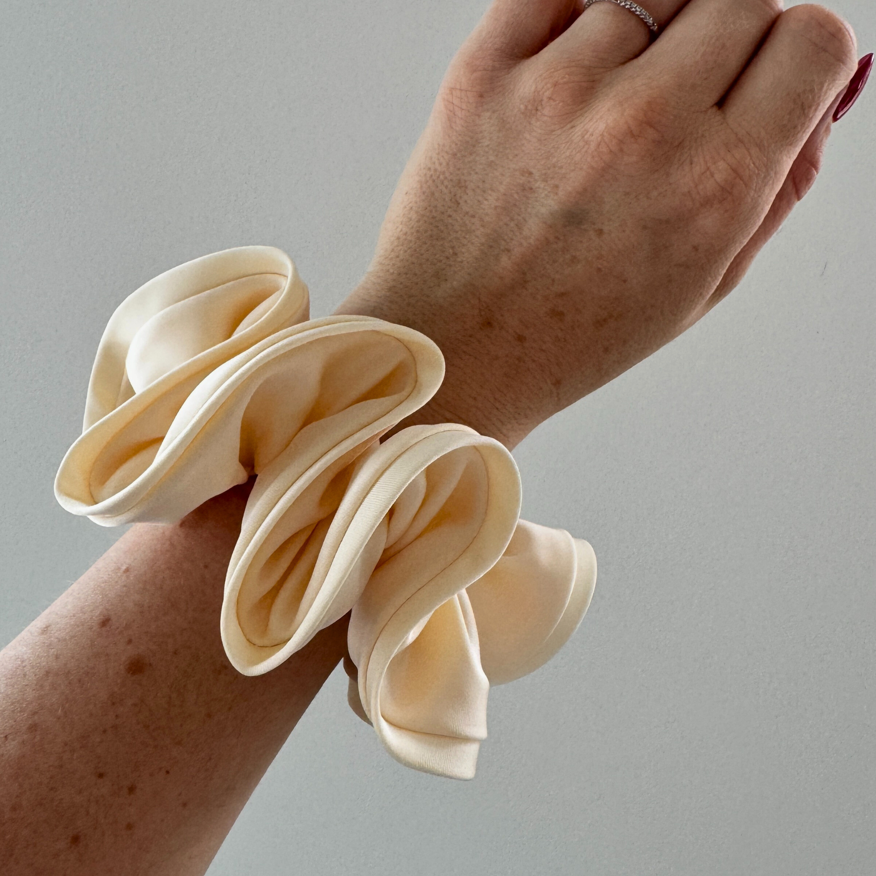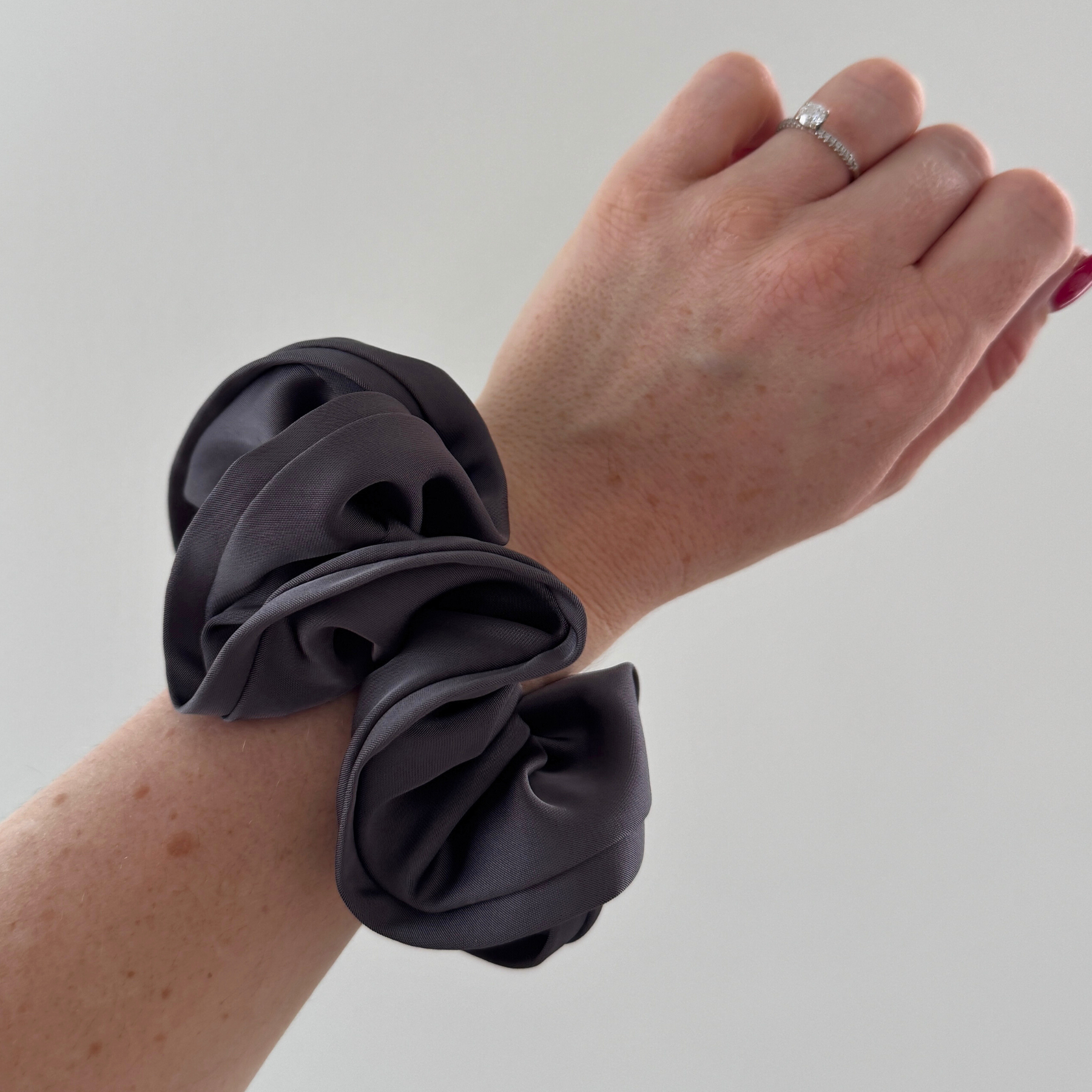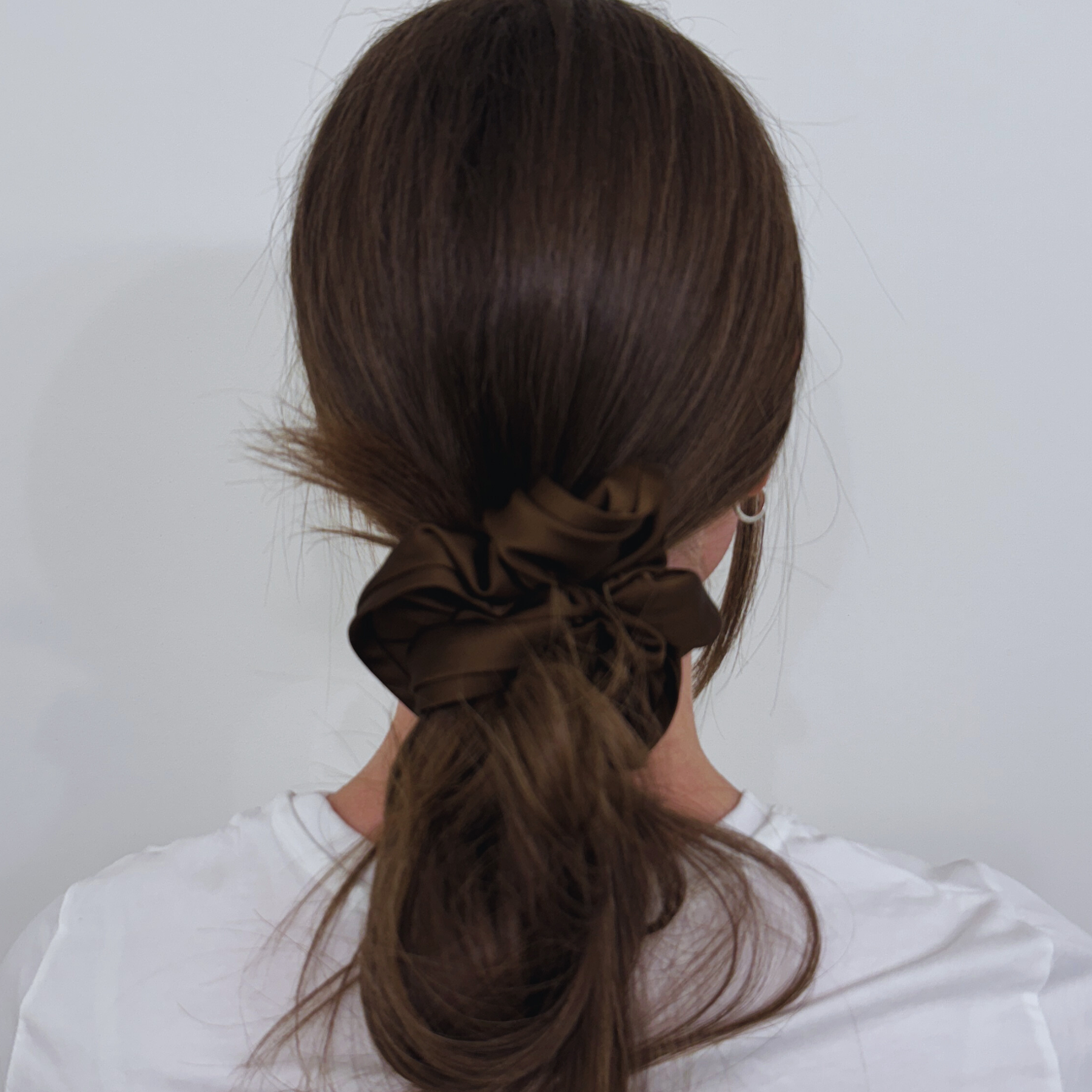 This stylishly oversized hair scrunchie in sleek satin gently secures your mane in place while protecting from damage and tension. Suitable for all hair types and available in four beautiful neutral tones.