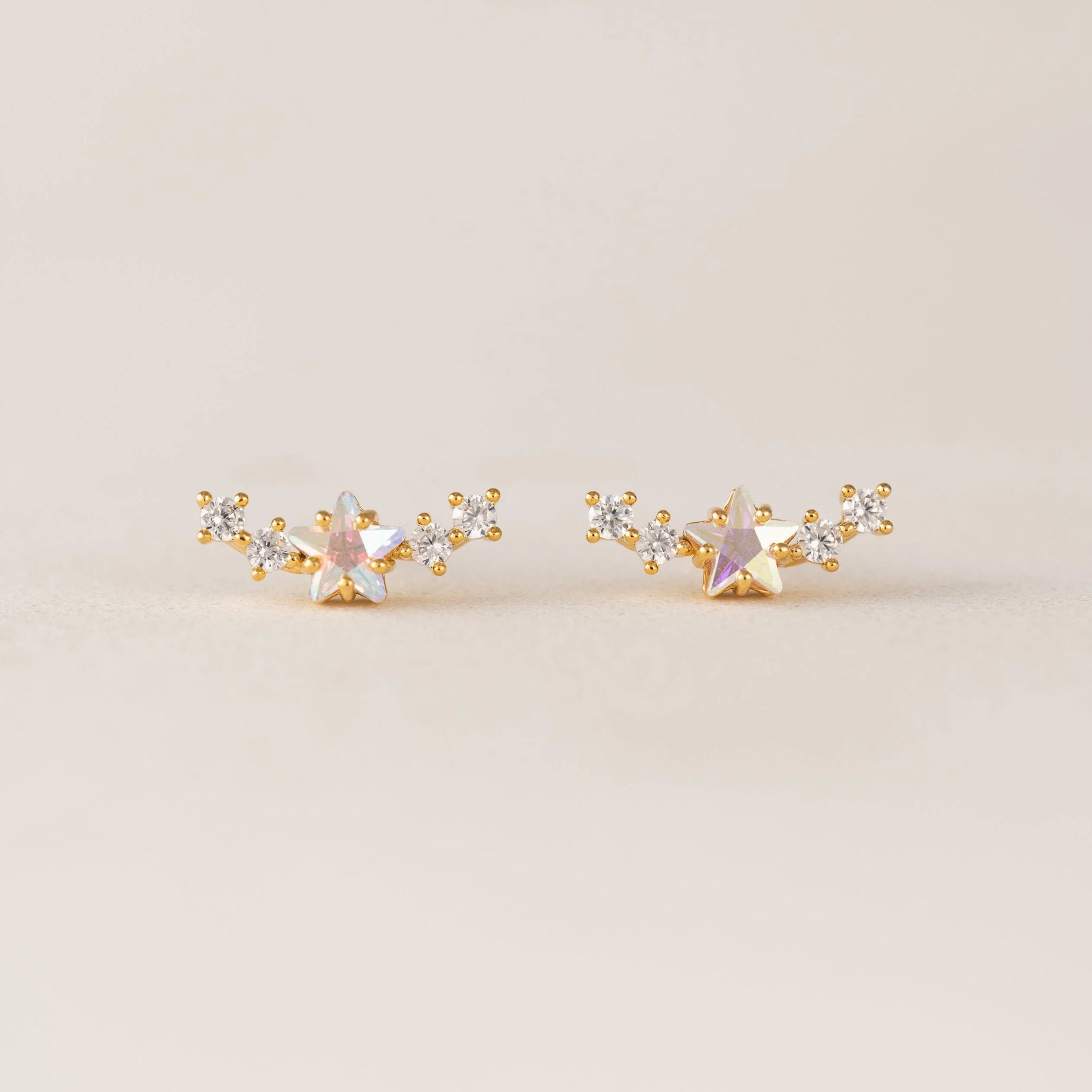 Delicate and dazzling, these starry climber earrings feature a trail of cubic zirconias that shimmer with every movement. Lightweight and luminous, they’re perfect for adding a touch of sparkle—whether you're headed to a party or just shining through your everyday orbit.